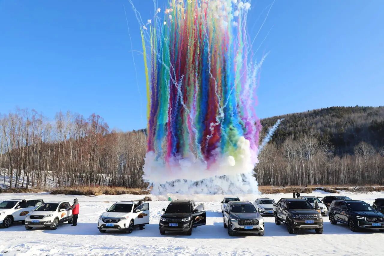 活动现场,20余台车辆整装待发,车身与皑皑白雪相映成趣。随着鸣笛声长鸣、礼炮声震天,发车指令正式下达,前导车引领众车辆有序出发,引擎轰鸣划破林海静谧,车队穿梭在银装素裹的森林冰雪赛道上,一路尽览御龙山原生态冰雪风光,车手们沉浸式体验穿越冰雪森林的速度与激情。