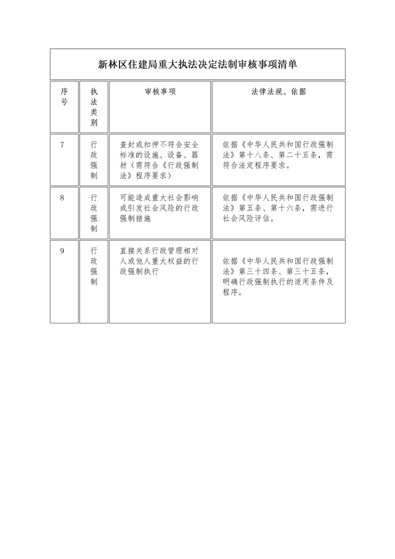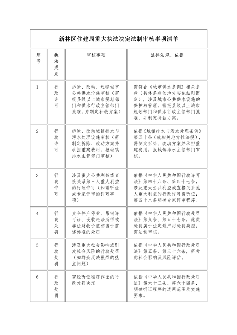 新林区住建局重大执法决定法制审核事项清单