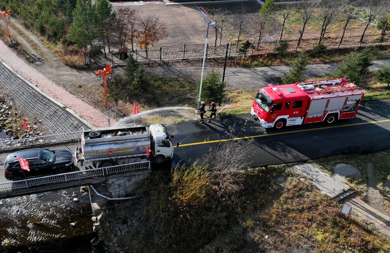 本次应急演练模拟以在新林一号桥上柴油罐车遭遇轿车追尾,后方轿车驾驶员腿部受伤,油品泄露入河为背景。新林生态环境局接到报警电话后立即通报区人民政府,区人民政府第一时间上报区突发环境事件应急指挥部。于海超下达演练指令,启动《新林区塔河流域“一河一策一图”环境应急响应预案》,各有关部门迅速响应,第一时间组织人员赶赴现场,开展应急救援工作。