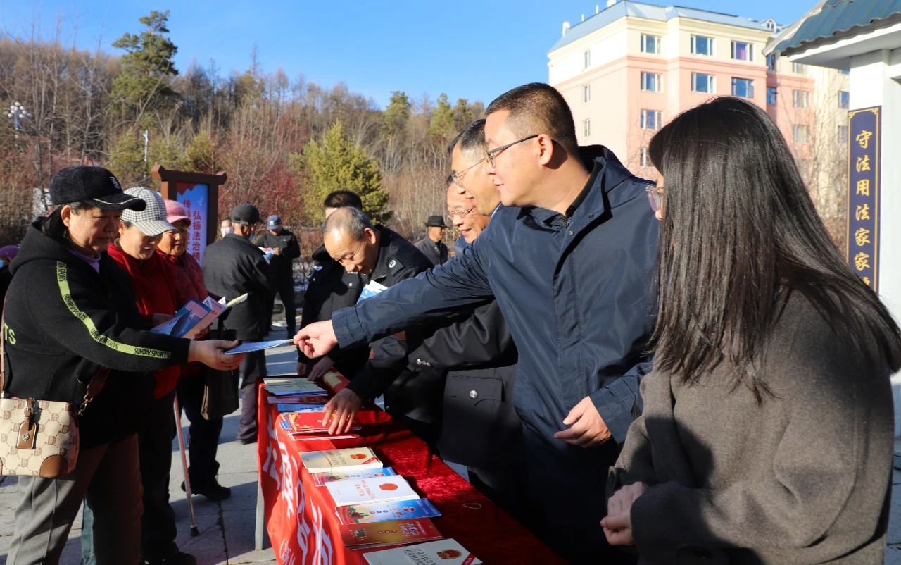 10月17日,一场别开生面的法治实践宣传活动在新落成的法治文化广场开展,新林区司法局联合区委组织部、区委宣传部、区公安局、新林镇等单位以接地气的宣传方式,深入践行习近平法治思想,为居民群众送上一份独特的“法治大餐”。
