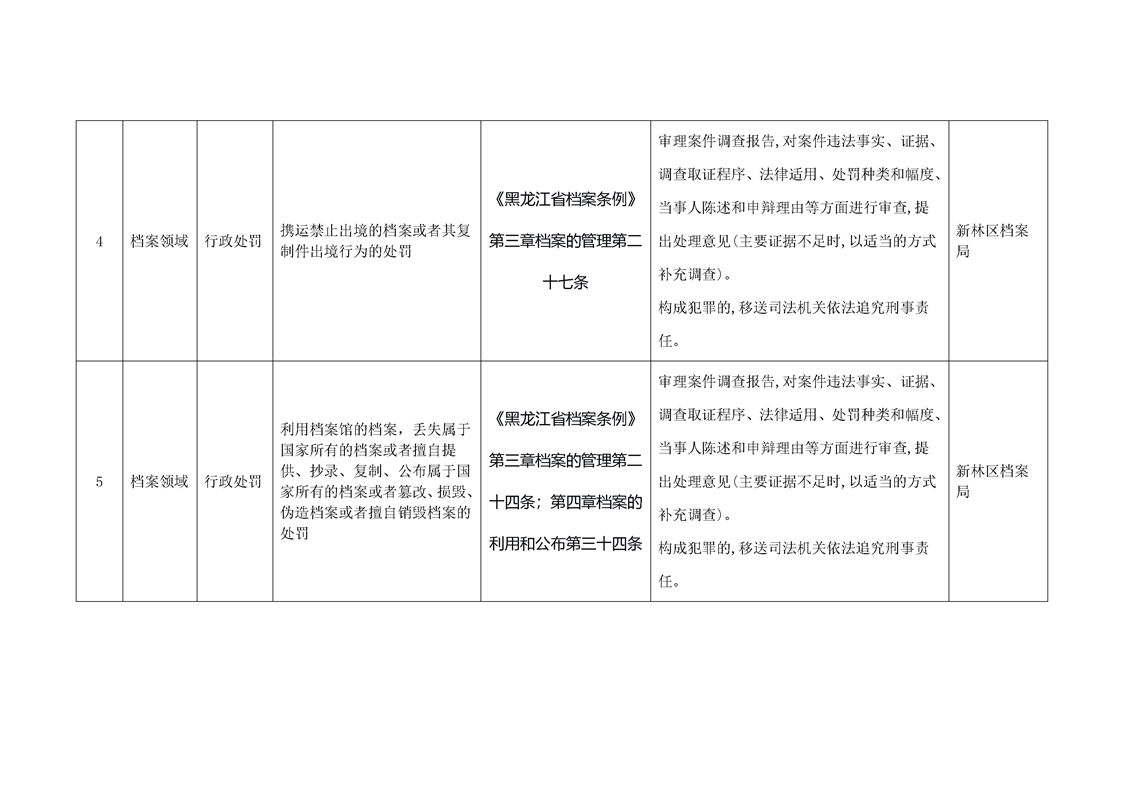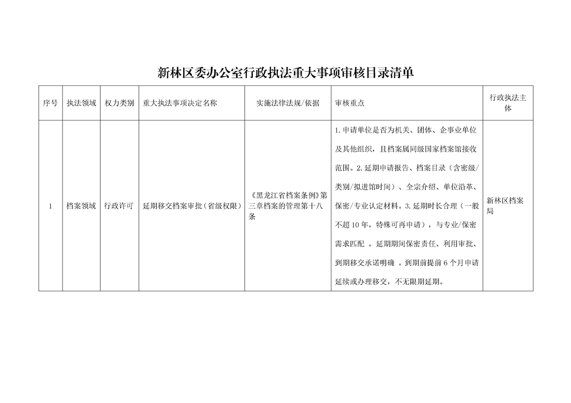新林区委办公室行政执法重大事项审核目录清单
